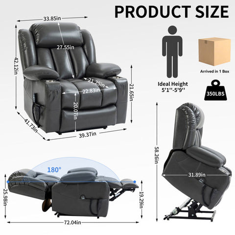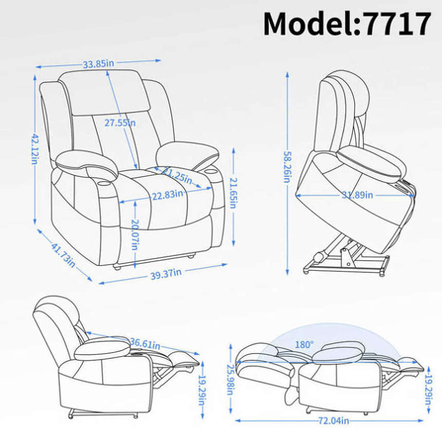 DUAL MOTOR POWER LIFT RECLINER CHAIR - You can press the buttons of the power-remote to control the lift or recline of the recliner chair, which means you can get any position you want, whether it's reclining 180 degrees or lifting. The lift chair is powered by electric dual motor mechanism, so it can recline nearly 180 degrees.