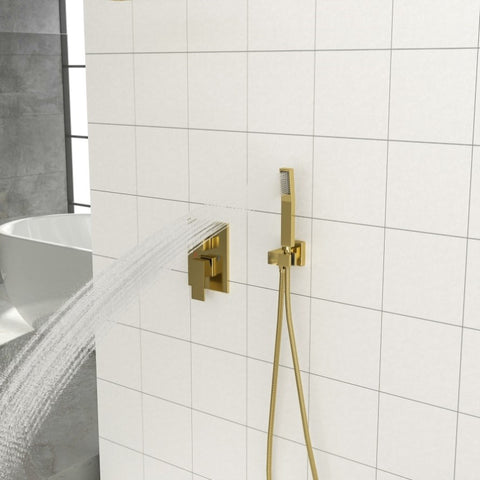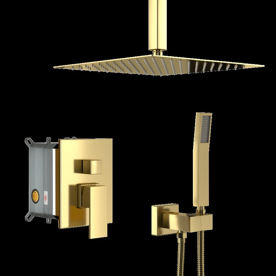 Dual Shower Head - 12 Inch Ceiling Mount Square Shower System with Rough-in Valve, Gold W1243132401