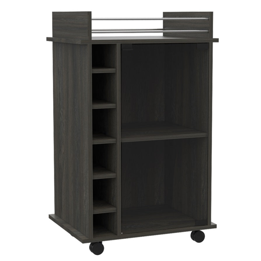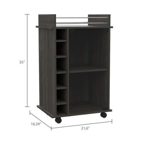 Dukat Bar Cart,Two Shelves, Six Built-in Wine Rack, Four Casters -Espresso B20091847