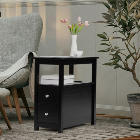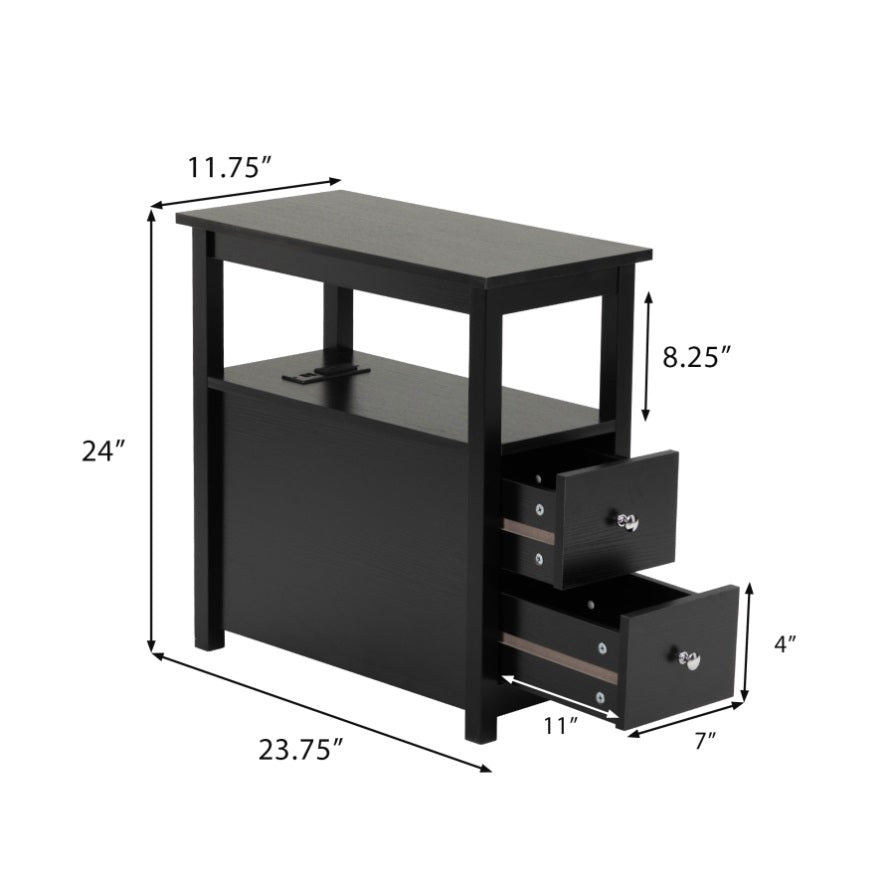 End Table with Charging Station, Narrow Sofa Side Table, Wooden Nightstand, Bedroom Living Room W2181P152443