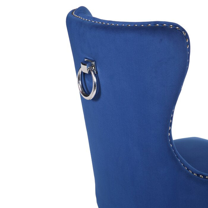 Erica 2 Piece Stainless Steel Legs Chair Finish with Velvet Fabric in Blue 808857648174