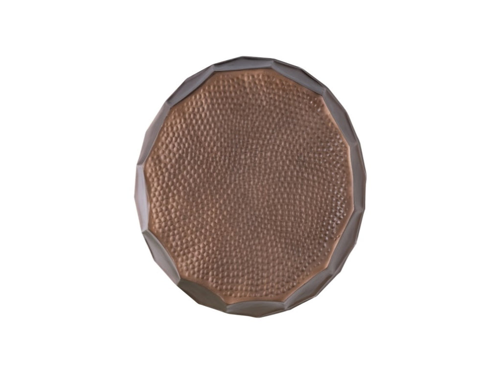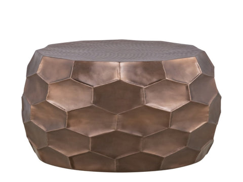 This stylish end table combines a unique hand-hammered design with a choice of three elegant antique finishes—antique copper, antique silver, or antique bronze. The hexagonal pattern and rounded shape add a touch of sophistication, making it a perfect accent piece for various interior styles. Crafted to blend seamlessly with modern, rustic, or industrial decor, this end table provides both functionality and artistic appeal.