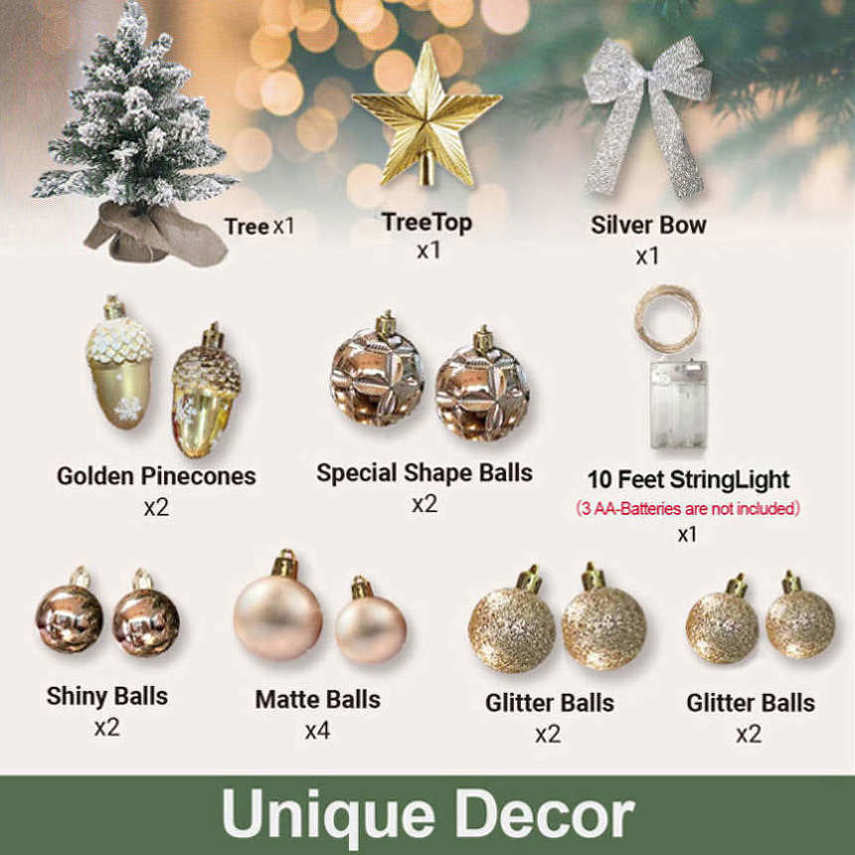 【UNIQUE Design】We designed and decorated this mini tree with unique ornaments that you can not find elsewhere. DIY decorating the small tree would be joyful and easy.