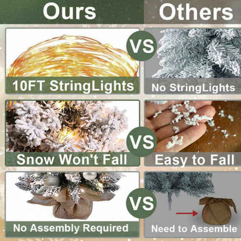 【Snow Won’t Fall】By more advanced manufacturing technique, the flocked snow stay firmly and evenly onto the leaves, which makes the mini christmas tree looks more lifelike.