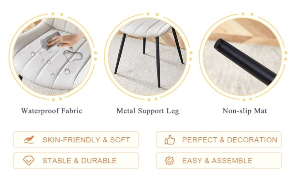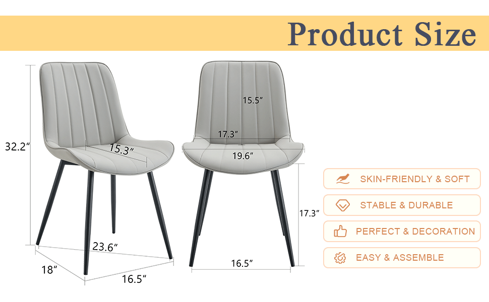 This dining chair is a top choice for those who seek quality living. It outlines the beauty of minimalism with elegant lines. The back of the chair is made of high quality PU material. The interior is filled with high-density sponge. It ensures comfort and durability for long time use. No matter what kind of decoration style your home is, this versatile dining chair can be easily integrated into it and become a bright landscape at home.