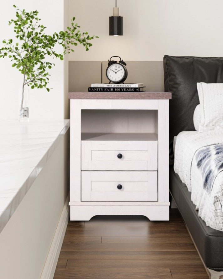 Farmhouse Nightstand , End Table, Side Table with 2 Drawers Storage Cabinet for Bedroom, Living W3151P264505