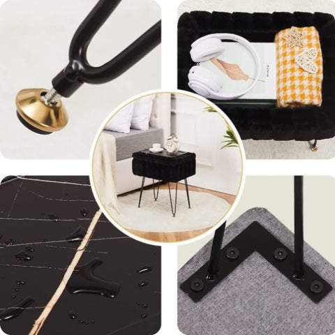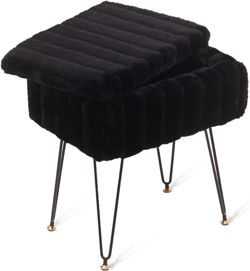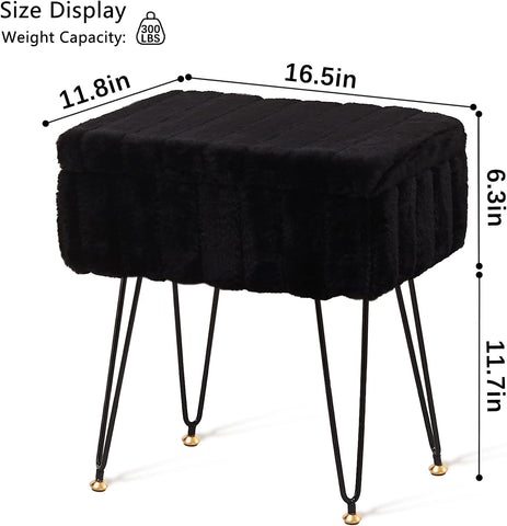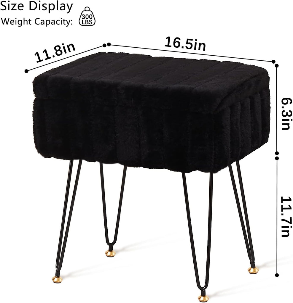 Faux Fur Storage Ottoman Vanity Stool with Metal Legs, Anti-Slip Feet, and Hidden Storage, 16.5" x 03652854