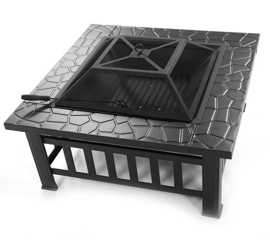 Fire Pit Table 32in Square Metal Firepit Stove Backyard Patio Garden Fireplace for Camping, Outdoor 05653746