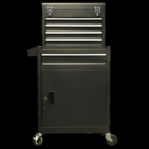 2-in-1 combination tool cabinet design, with the upper part being a tool cabinet and the lower part being a movable tool cart. It can be used alone or in combination, and when storing, the tool cabinet can be placed inside the tool cart to reduce space.