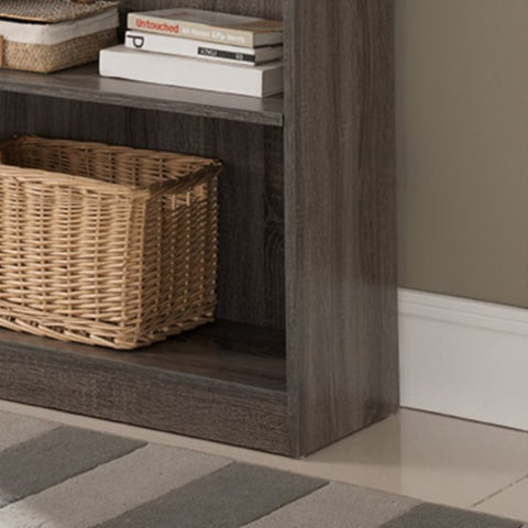 Five shelf wooden bookcase display cabinet with bottom front molding grey color