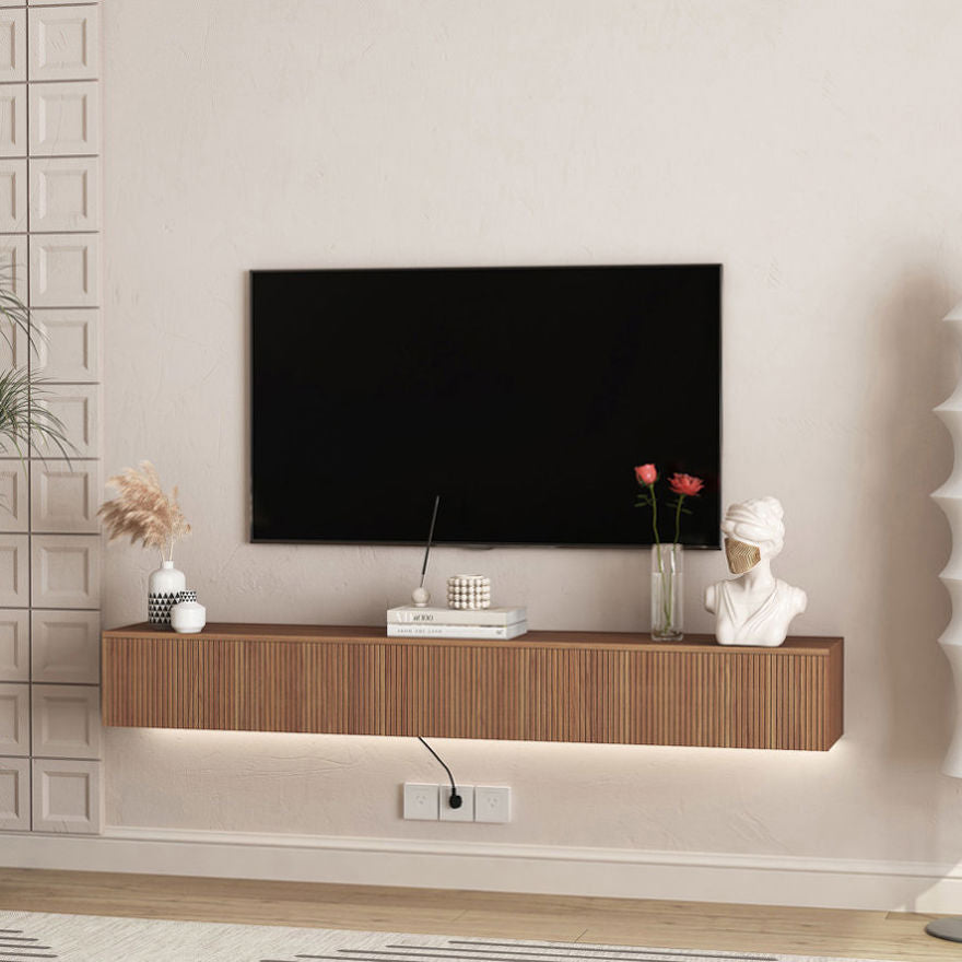 The floating TV stand uses thicker materials and is equipped with standard wooden nail wall-mounting hardware for stronger load-bearing capacity.