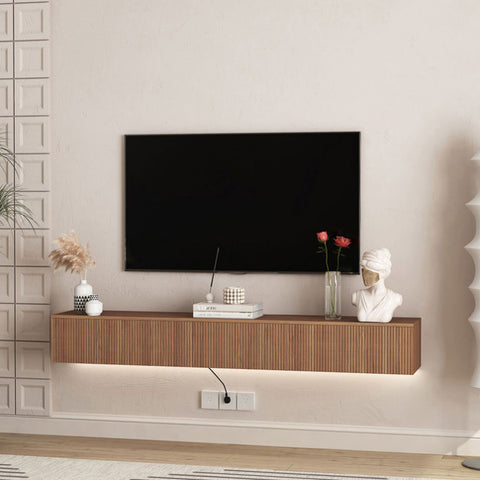 This wall mounted TV stand has a large storage space, perfect for storing TV components, game accessories, books and decorations. You can also place living room decorations on the TV stand.