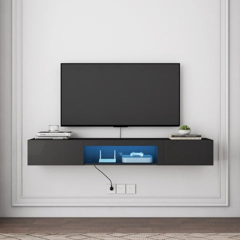 This wall mounted TV stand has a large storage space, perfect for storing TV components, game accessories, books and decorations. You can also place living room decorations on the TV stand.