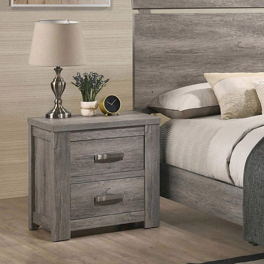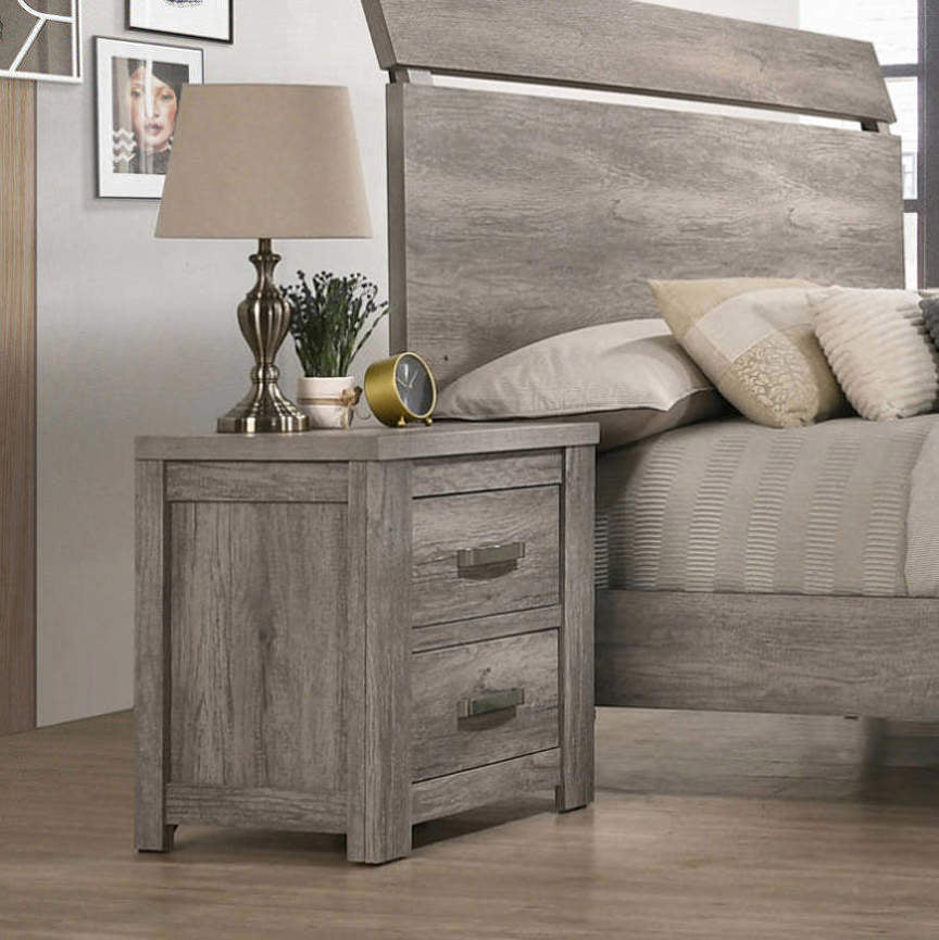 Floren Contemporary Wood Two-Drawer Nightstand, Weathered Gray T2574P225147
