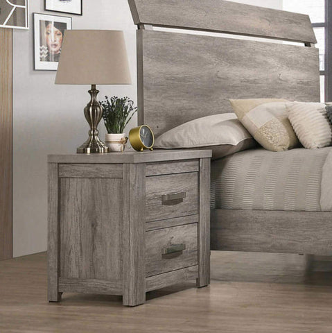 Floren Contemporary Weathered Wood Two-Drawer Nightstand, Gray