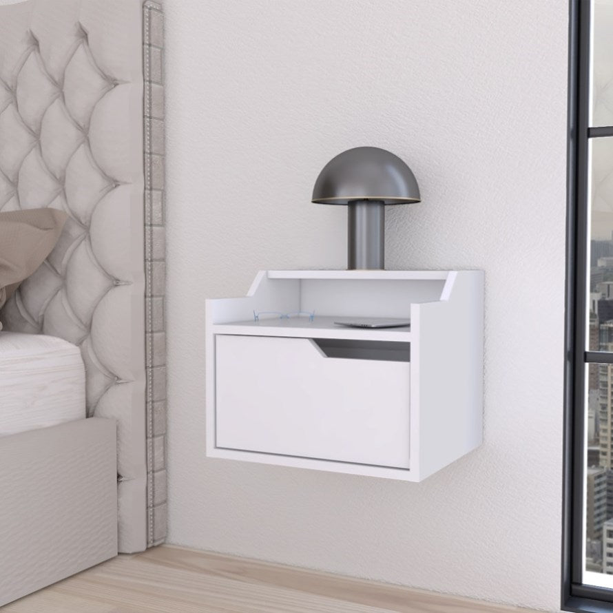 Florence Floating Nightstand with Drawer and Dual-Shelf Display