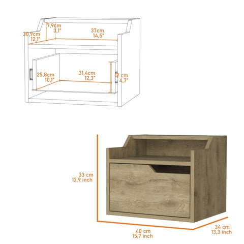 Florence Floating Nightstand with Drawer and Dual-Shelf Display