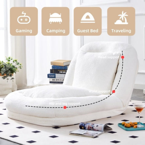 Folding Sofa Chair with 5 Adjustable Positions Plush Floor Lounge Chair for Gaming, Meditation, and W1935P299760