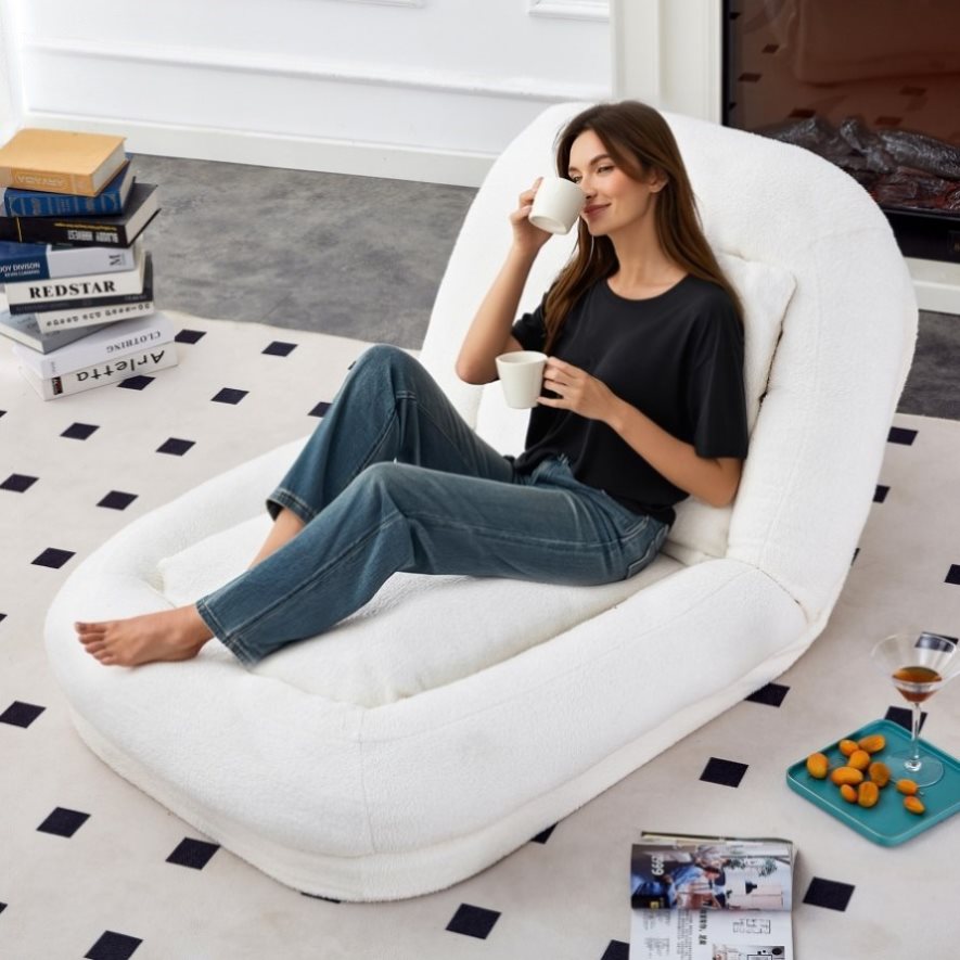 Sleek Modern Design: Elevate your space with our contemporary lazy sofa chair, blending modern aesthetics with cozy functionality. Perfect as a stylish seat or a snug bed, it’s wrapped in plush, warm fabric for a welcoming touch.