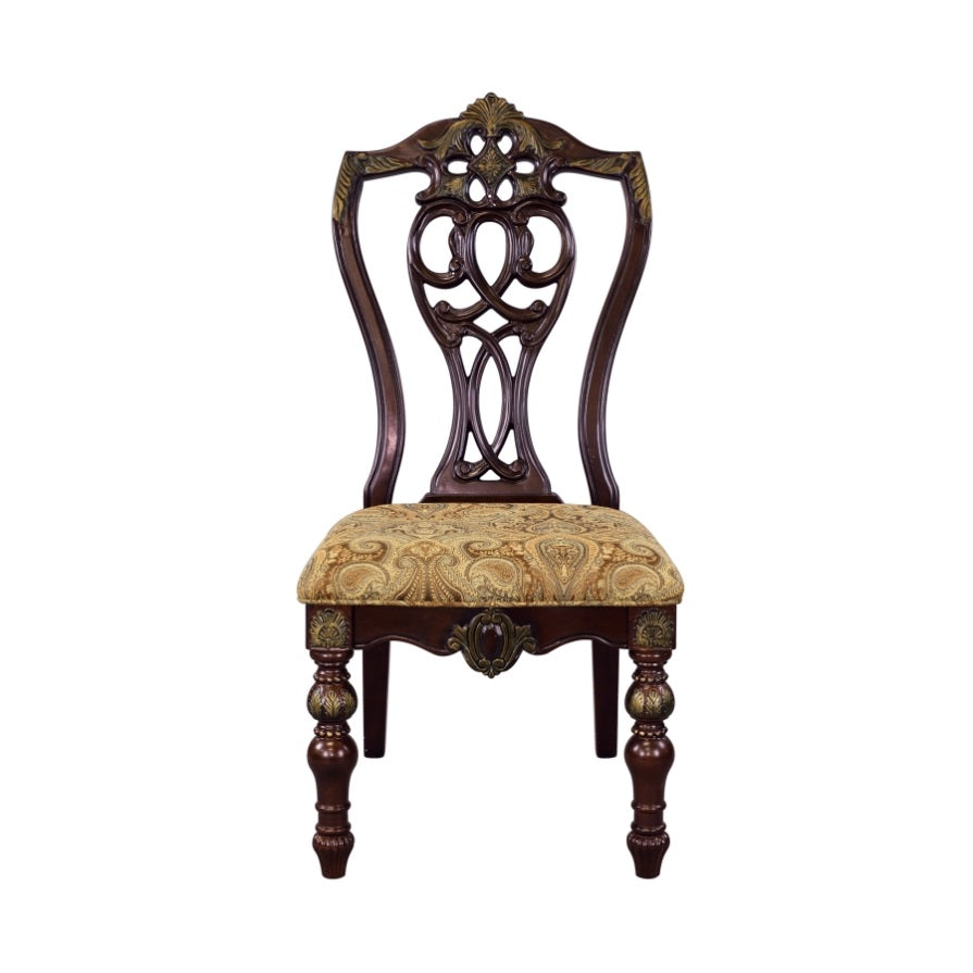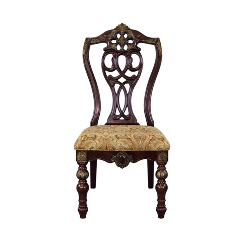 Formal Traditional Dining Chairs 2pc Set Dark Cherry Finish with Gold Tipping Jacquard Fabric B01178666
