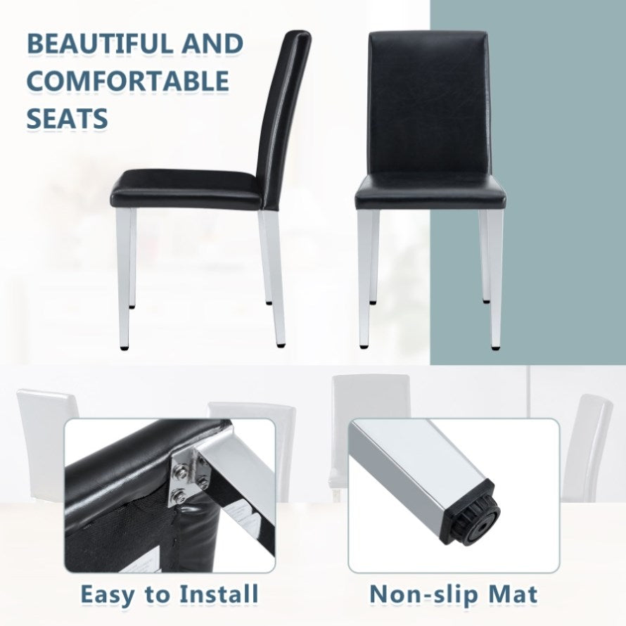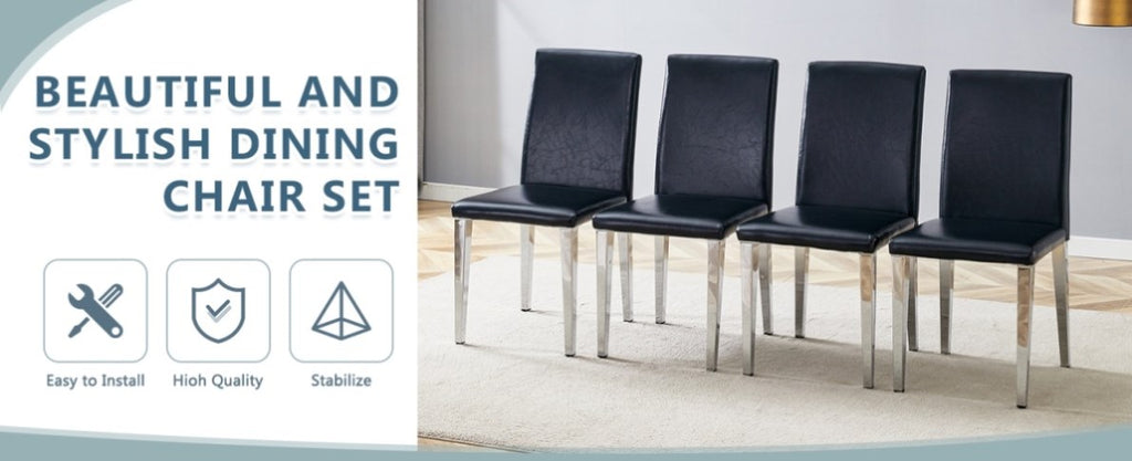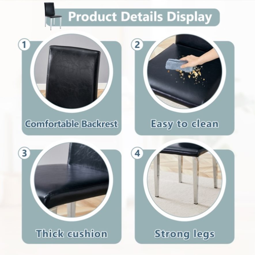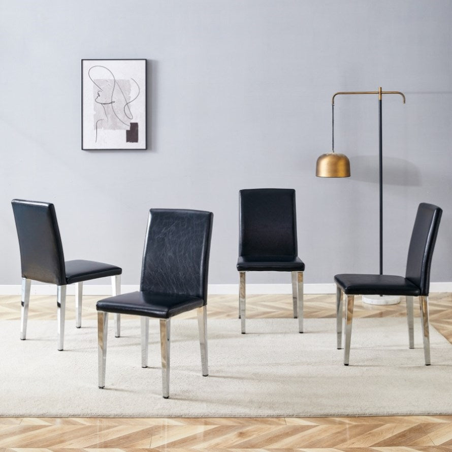 Four Black PU dining chairs,Silver Metal Legs.Simple and versatile, comfortable and accompanied. W1151P269018