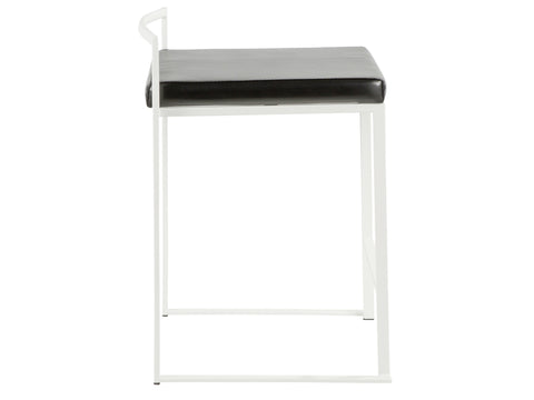 Fuji Contemporary Stackable Counter Stool in White with Black Faux Leather Cushion by LumiSource B202P222380