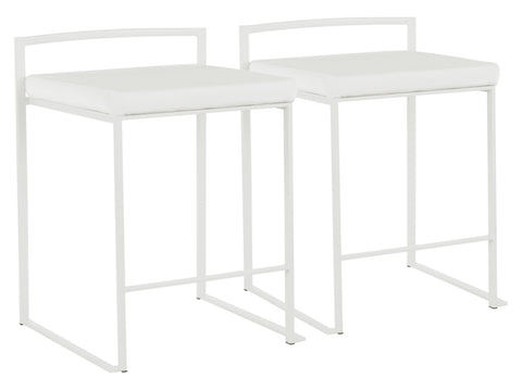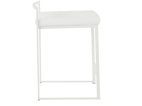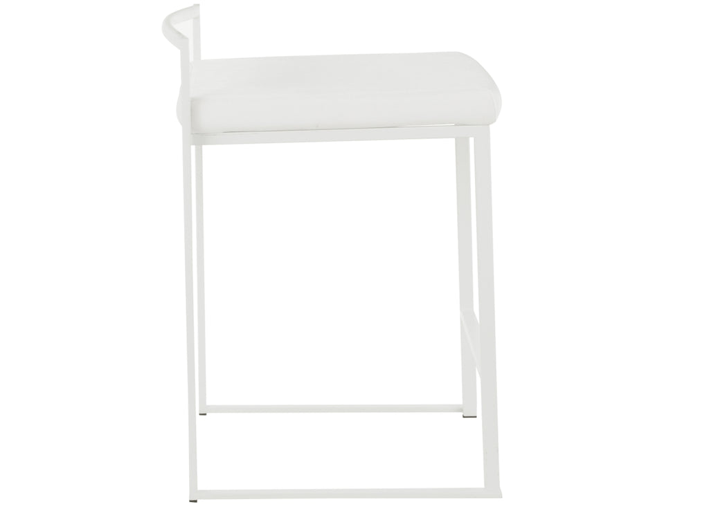 Fuji Contemporary Stackable Counter Stool in White with White Velvet Cushion by LumiSource - Set of B202P222387