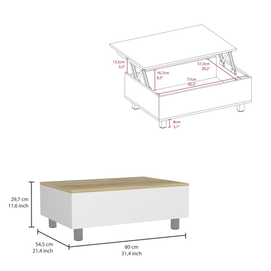 Gambia Lift Top Coffee Table, Four Legs -White / Light Oak B20091866