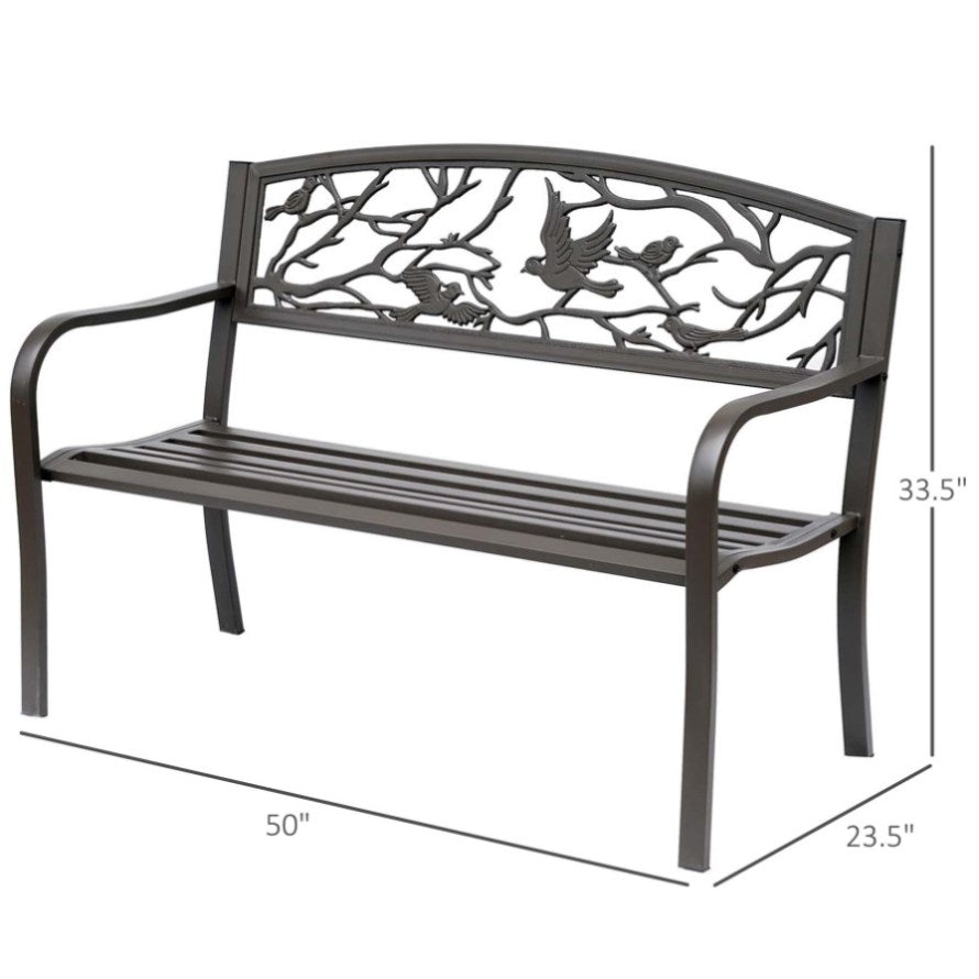 - - Distinctive animal pattern on the cast iron bench back gives it a unique vintage feel