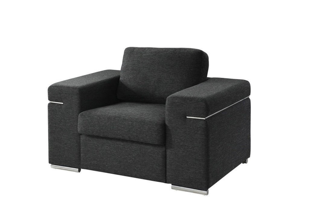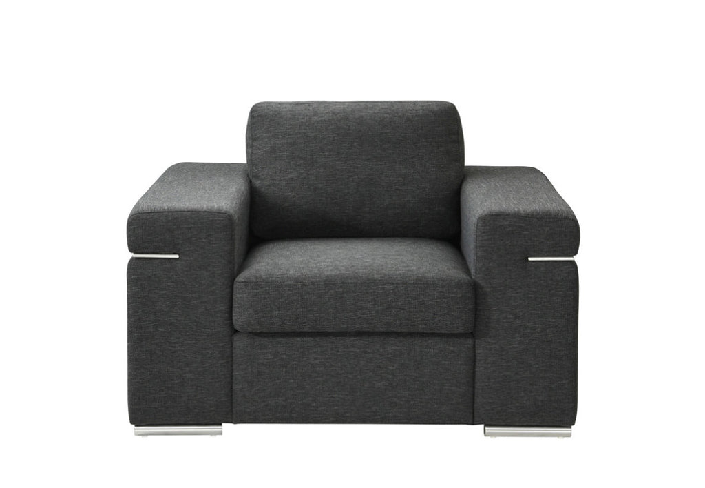 Glam up your living room with the Gianna Collection! Crafted from fine wood and quality fabrics, this chair features oversized arms with chrome metal inserts on the side. The matching chrome legs adds a touch of elegance while oversized seat construction allows for more space and comfort for each seat. Entertain your guests and family in comfort and style. Also available in 3-seater sofa and 2-seater loveseat.