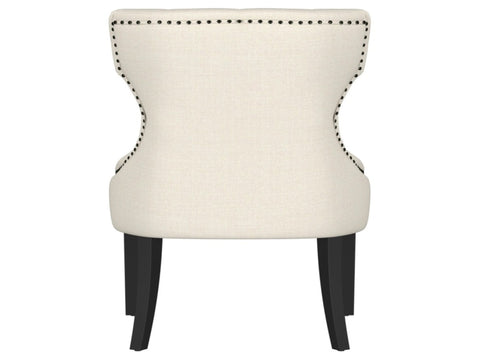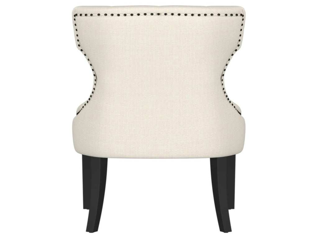 Soft upholstery is accented with button tufting on the inside and nailhead trim along the back for added texture and refinement