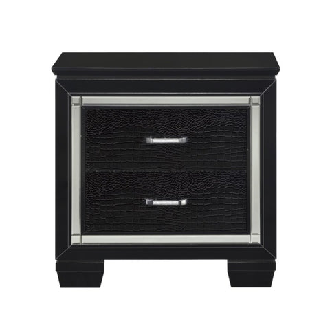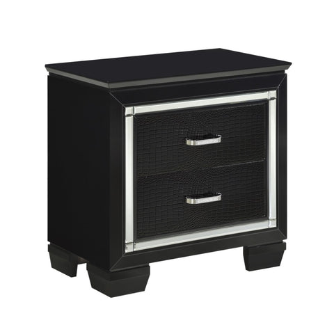 Glamourous Black Finish 1pc Nightstand 2x Dovetail Drawers Faux Alligator Embossed Fronts Bedroom B01151365