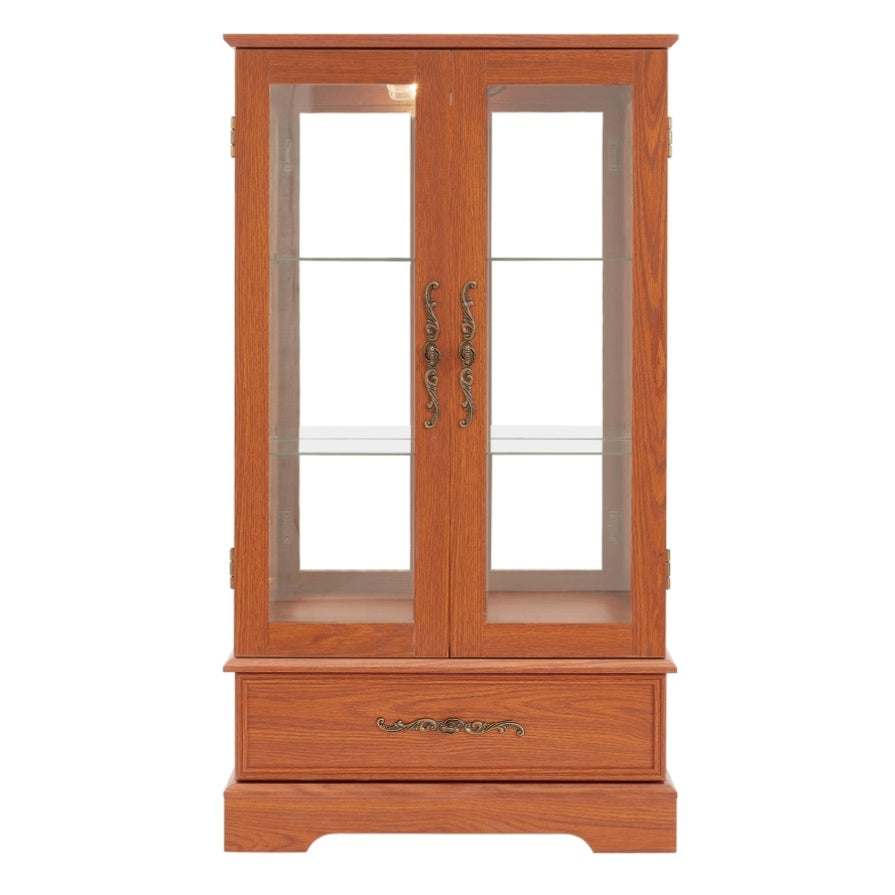 Glass Cabinet Lighted Glass Cabinet Curio Display Cabinet with Adjustable Glass Shelves 2 Doors and W2275P295883