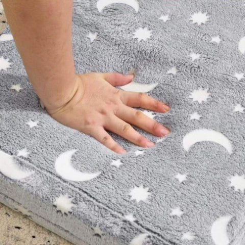 1. Enchanting Glow-in-the-Dark Celestial Design: Features a stylish light grey background with star and moon patterns that absorb light and emit a soft, magical glow, creating a soothing night-time environment for kids.