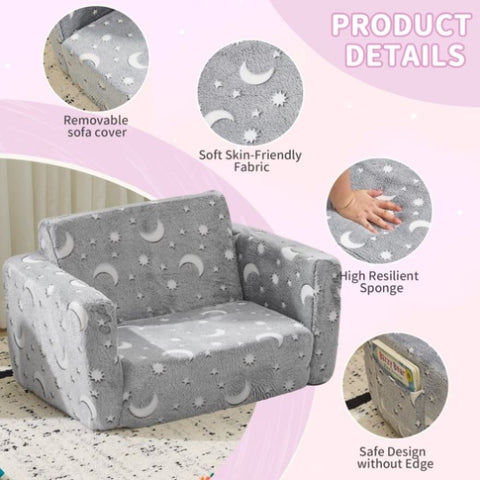 Glow-in-the-Dark Kids Foldable Sofa Bed All-Sponge Single Chaise Lounge Light Grey Star & Moon 41602127