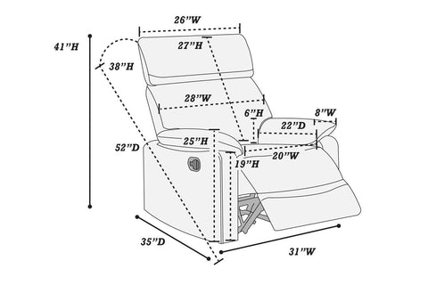 Recliner Chair - 31"W x 35"L x 41"H Listing Include : 1pc Motion Recliner Chair Only. Recliner Sofa- Not Included. Product Features:-