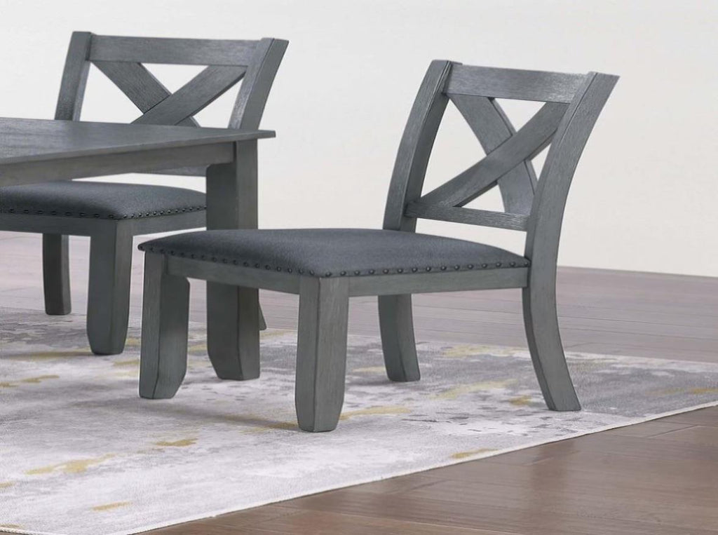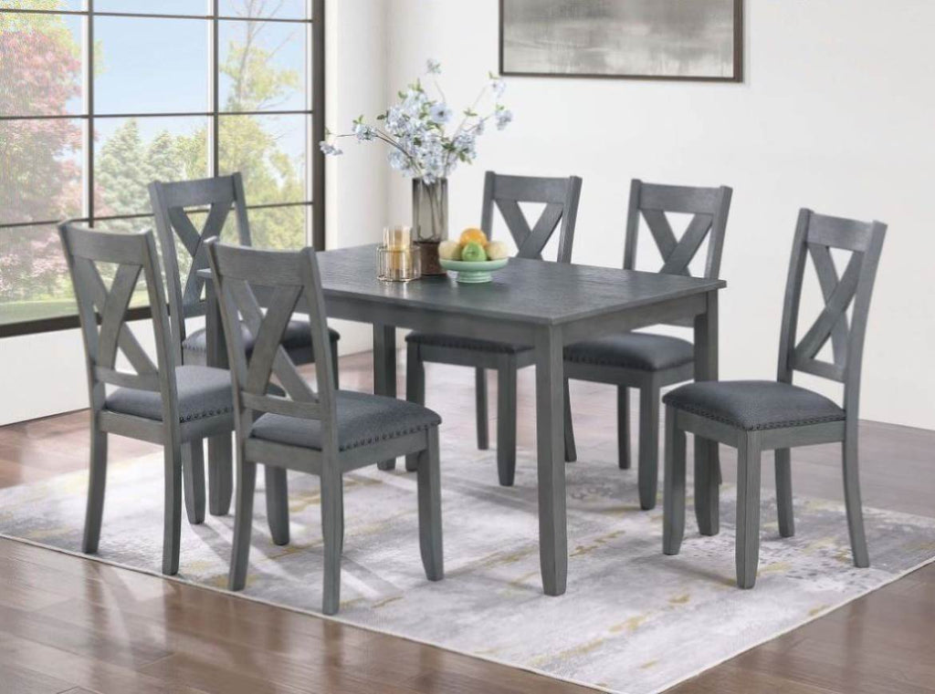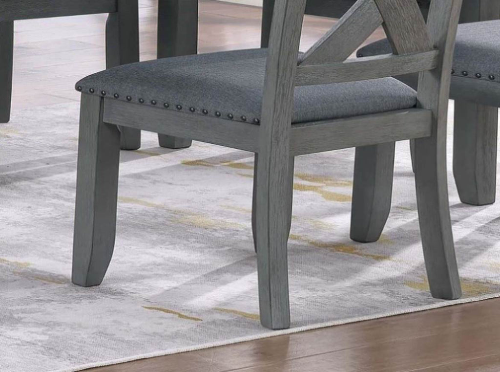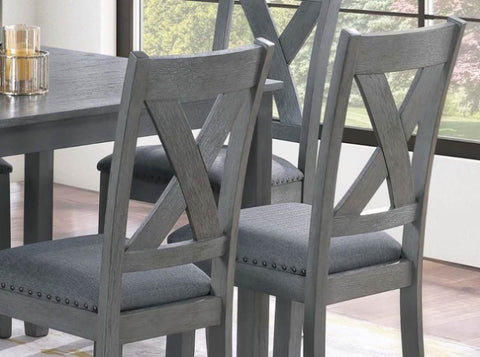 Gray Finish Dining Table 6x Chairs 7pcs Dining Set Cushion Seat Nailhead X-Cross Back Chairs Dining B011P348932