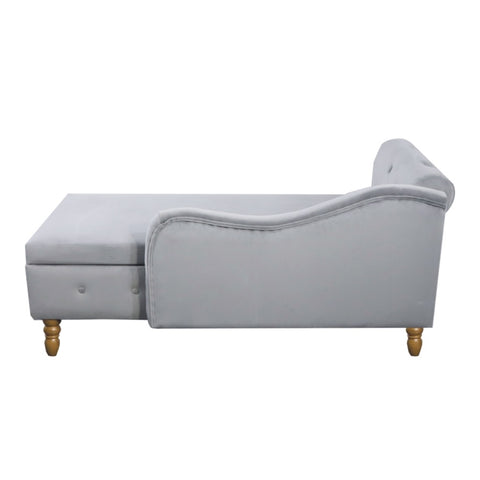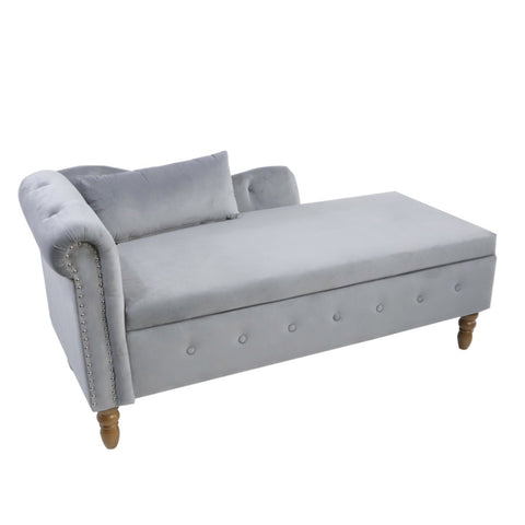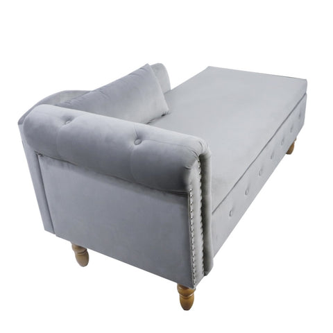 Grey Chaise Lounge Indoor,Velvet Lounge Chair for Bedroom with Storage & Pillow,Modern Upholstered W1170100897