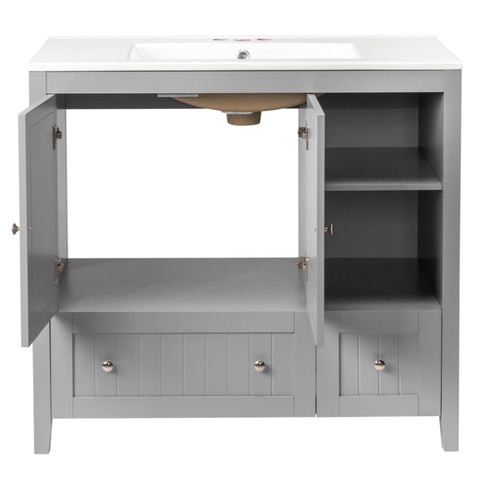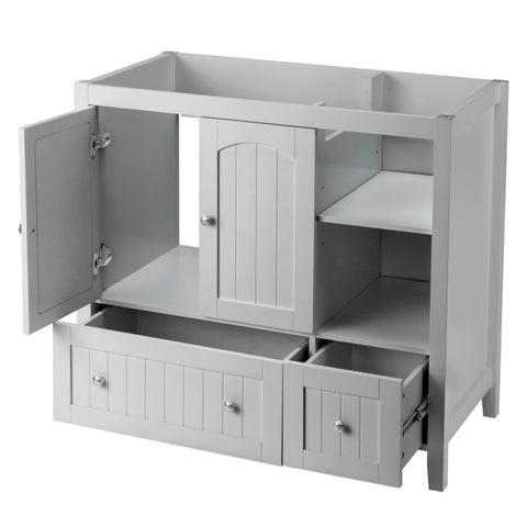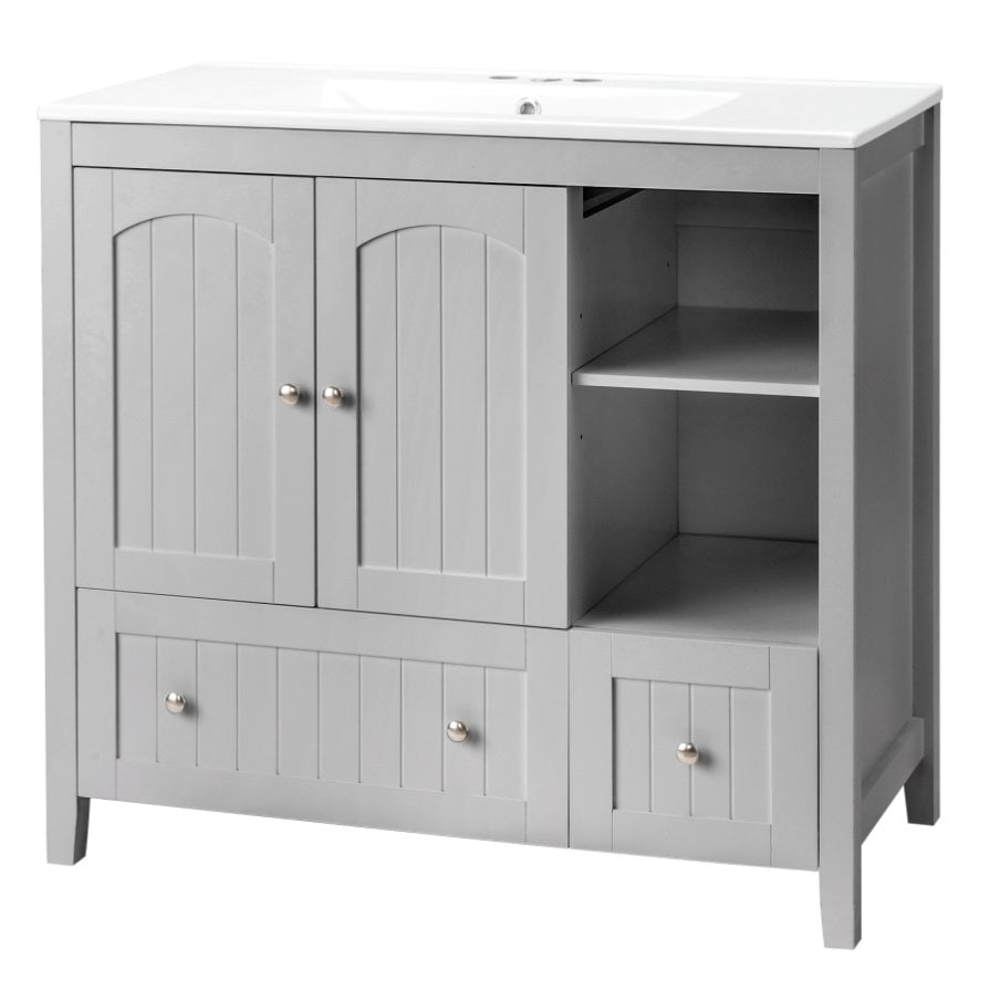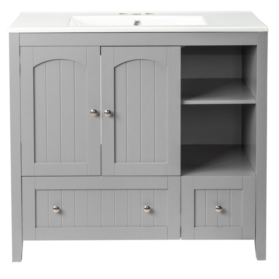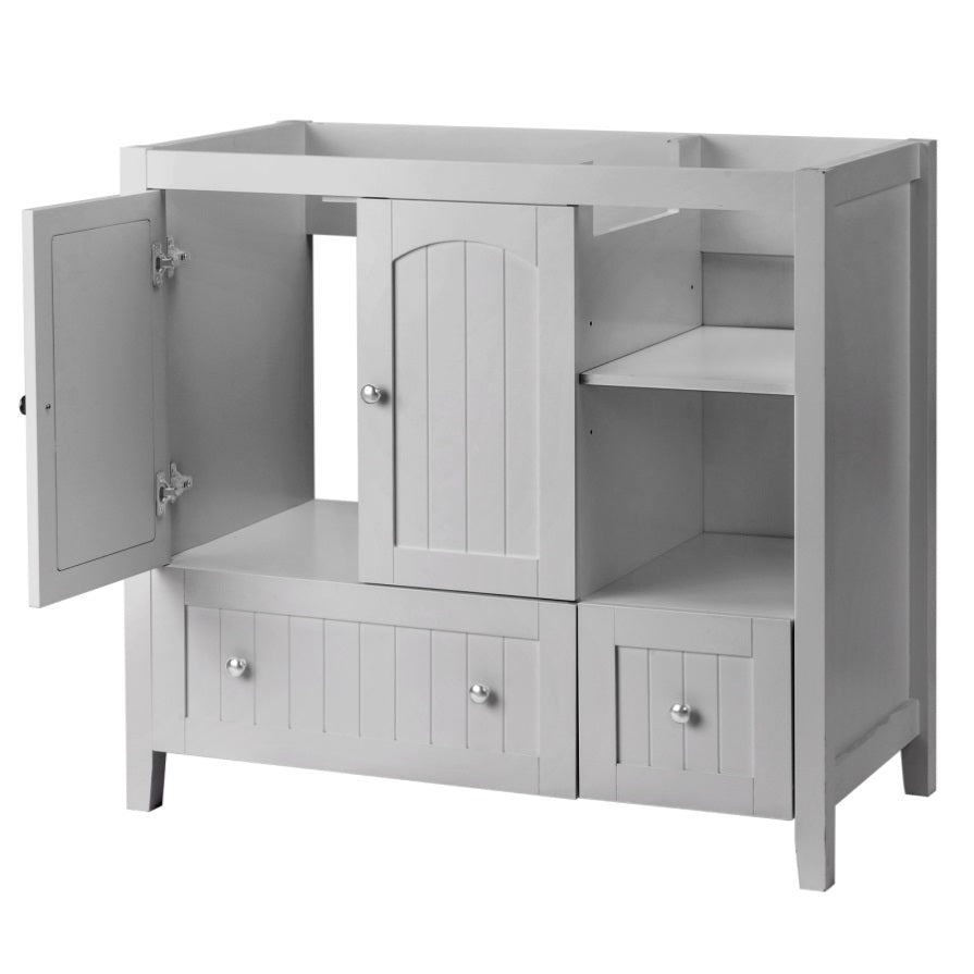 Grey MDF Lacquered Double Door & 2-Drawer Bathroom Vanity Cabinet with Decorative Molding 06351228