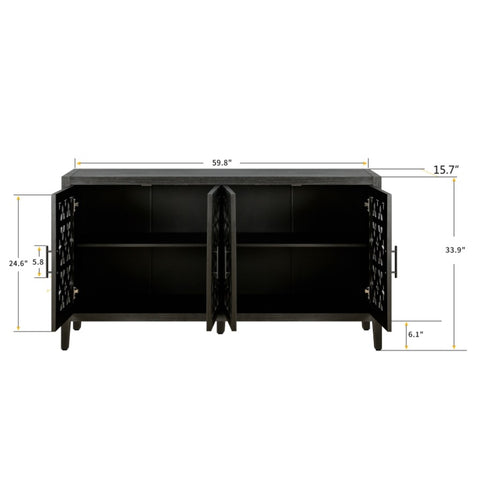 4 Doors Storage Wooden Cabinets Console Table Sideboard