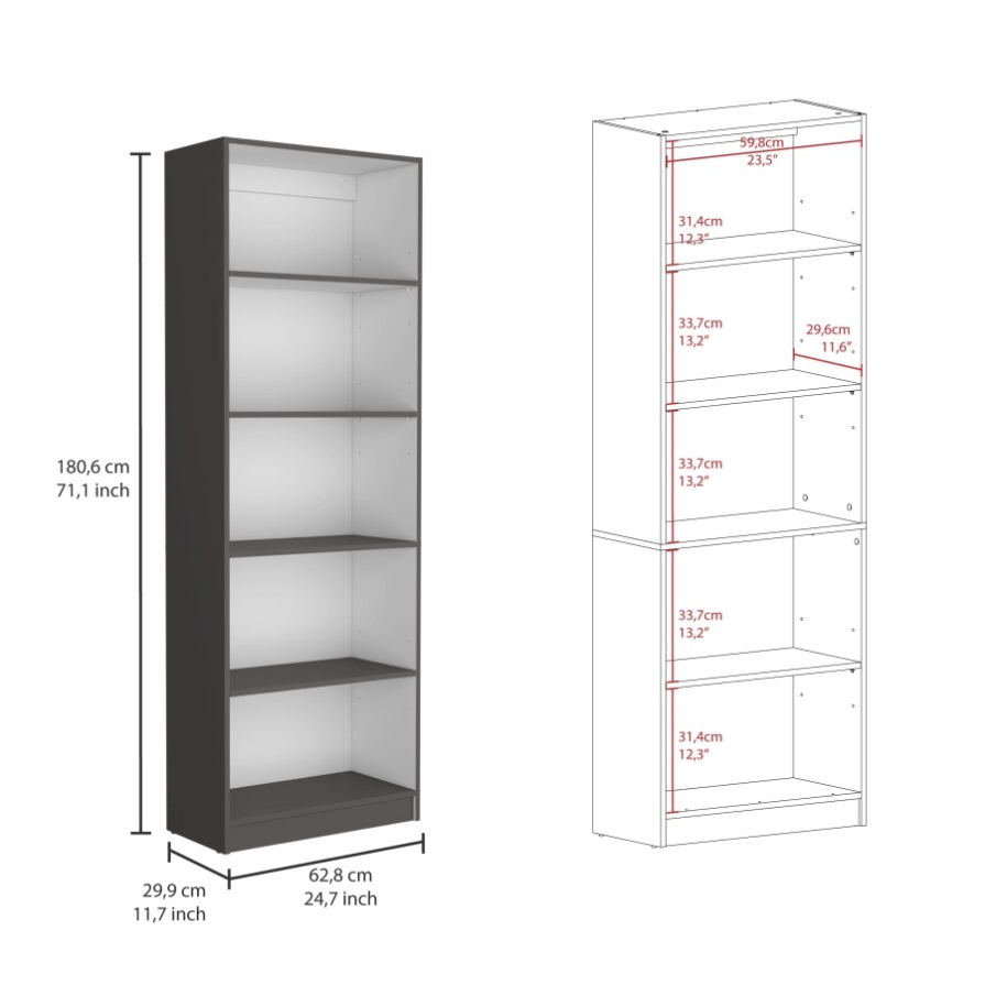 Home 4 Shelves Bookcase with Multi-Tiered Storage -Matt Gray / White -Office B200137835
