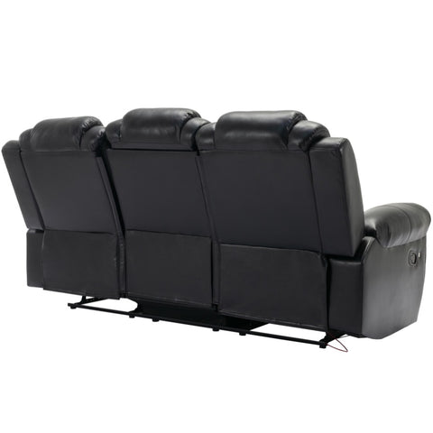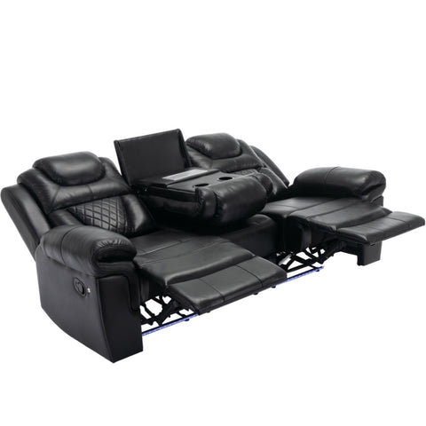 Home Theater Seating Manual Recliner Chair with Center Console and LED Light Strip for Living Room, WF310727AAB