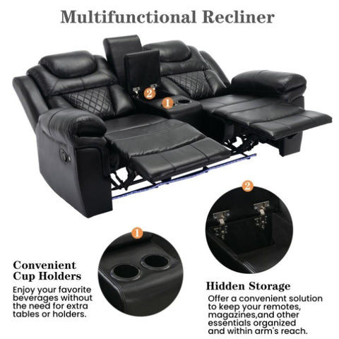 Home Theater Seating Manual Recliner Loveseat with Hide-Away Storage, Cup Holders and LED Light WF310726AAB