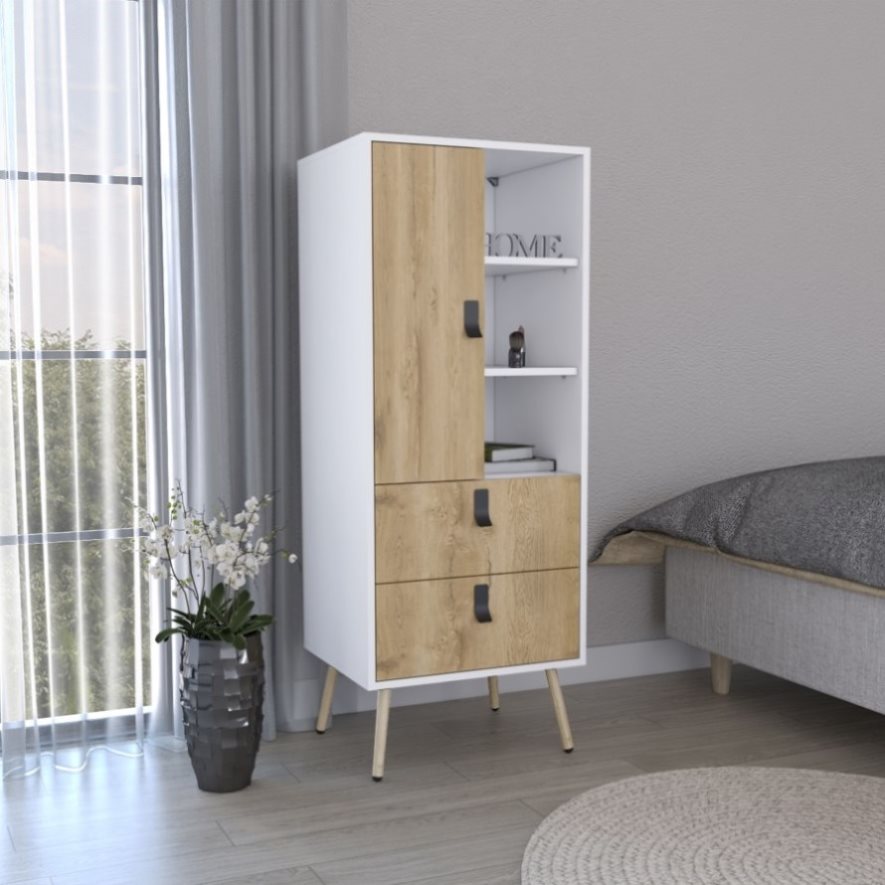 Huna Tall Dresser, Unit with Door, 2 Drawers, and Open Shelves B070P173201