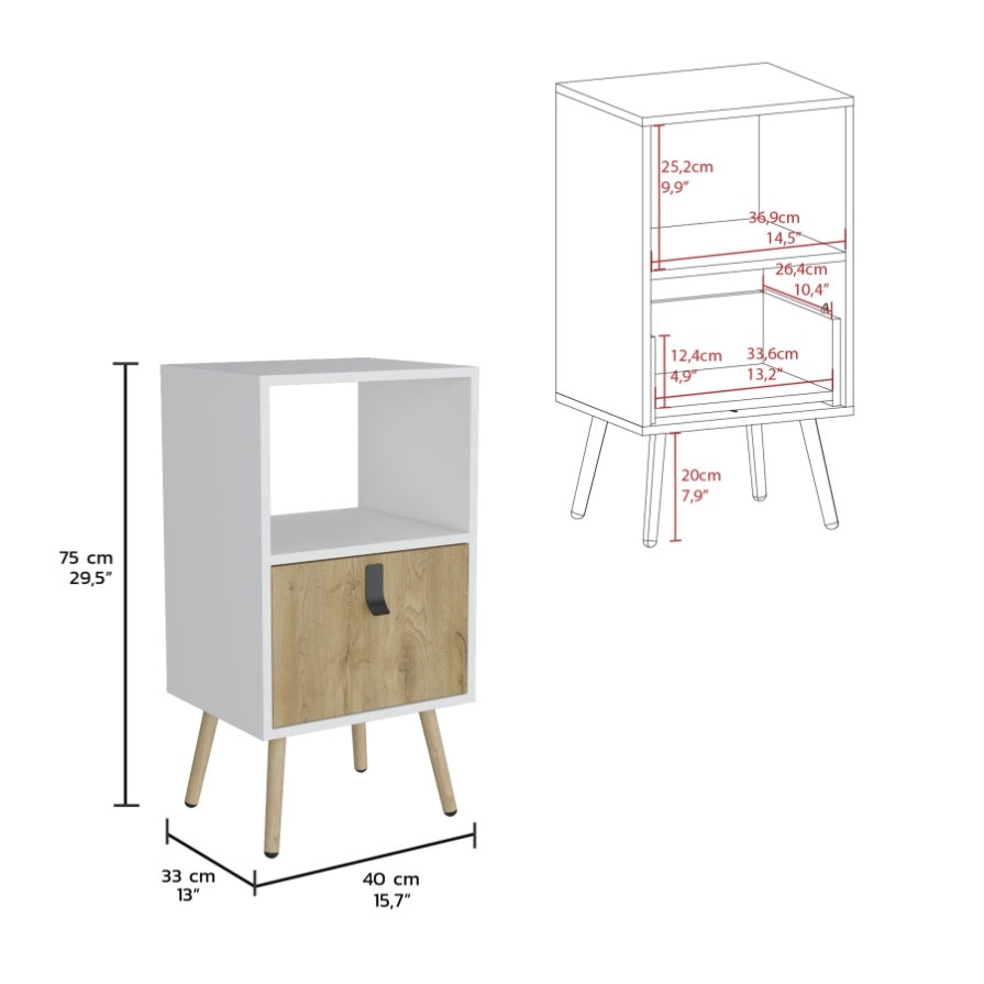 Huna Tall Nightstand with Open Storage and Drawer in Modern Design B070P173217