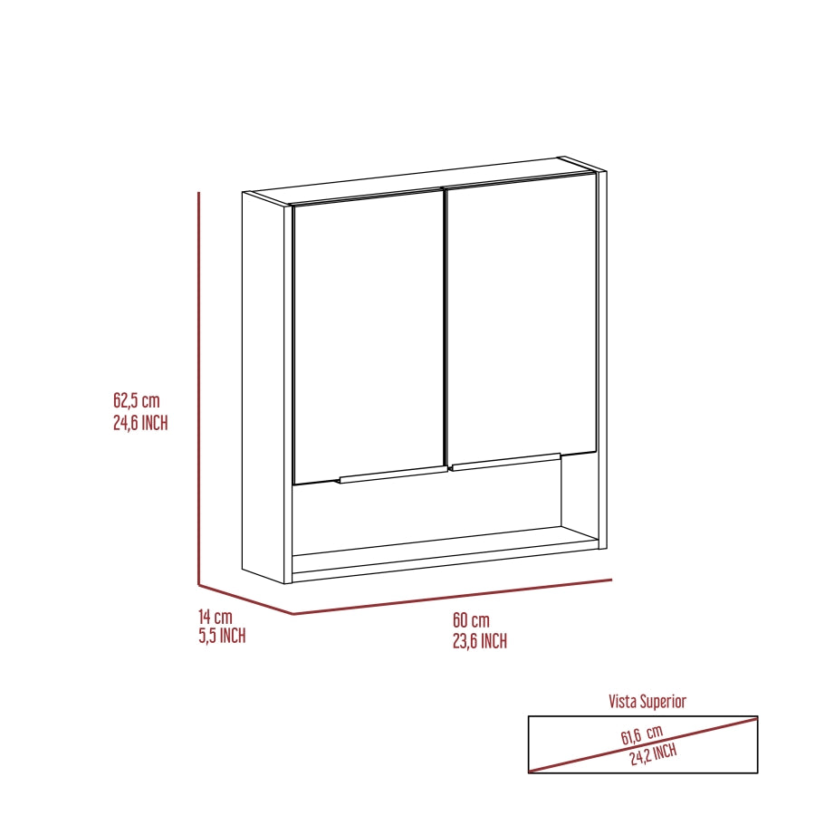 Jaspe Mirror Cabinet, Three Internal Shelves, One Open Shelf, Double Door Cabinet -Black B07091914