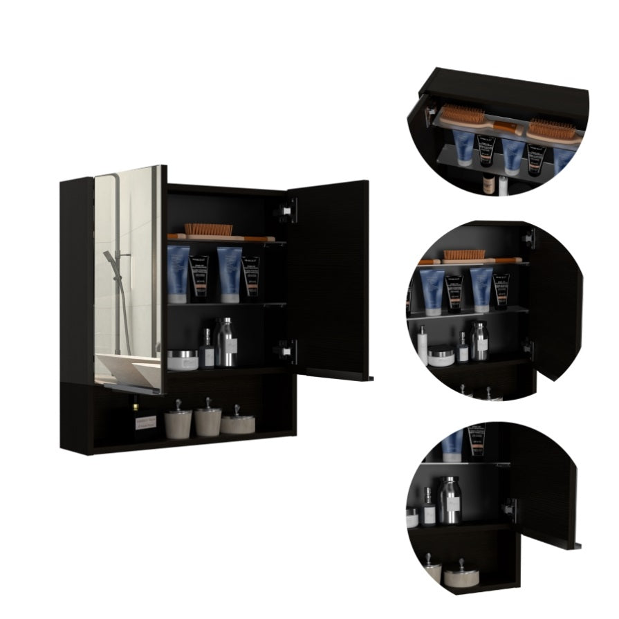 Jaspe Mirror Cabinet, Three Internal Shelves, One Open Shelf, Double Door Cabinet -Black B20091914