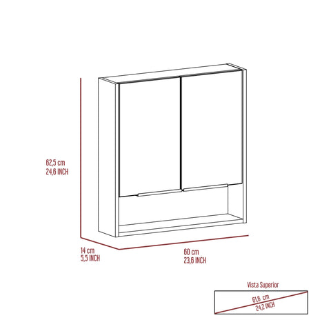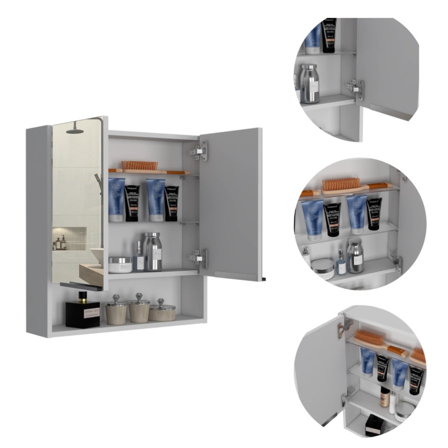 Jaspe Mirror Cabinet, Three Internal Shelves, One Open Shelf, Double Door Cabinet -White B20091916