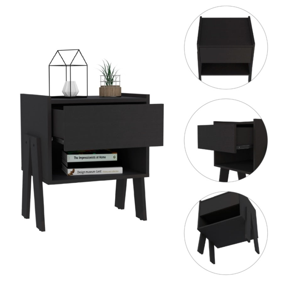Joy Nightstand , End Table, Side Table Four Legs, One Open Shelf, One Drawer -Black B07091917