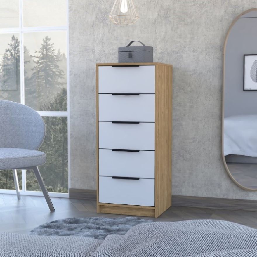 Kaia 5 Drawer Dresser, Vertical Dresser -White / Pine B20092064